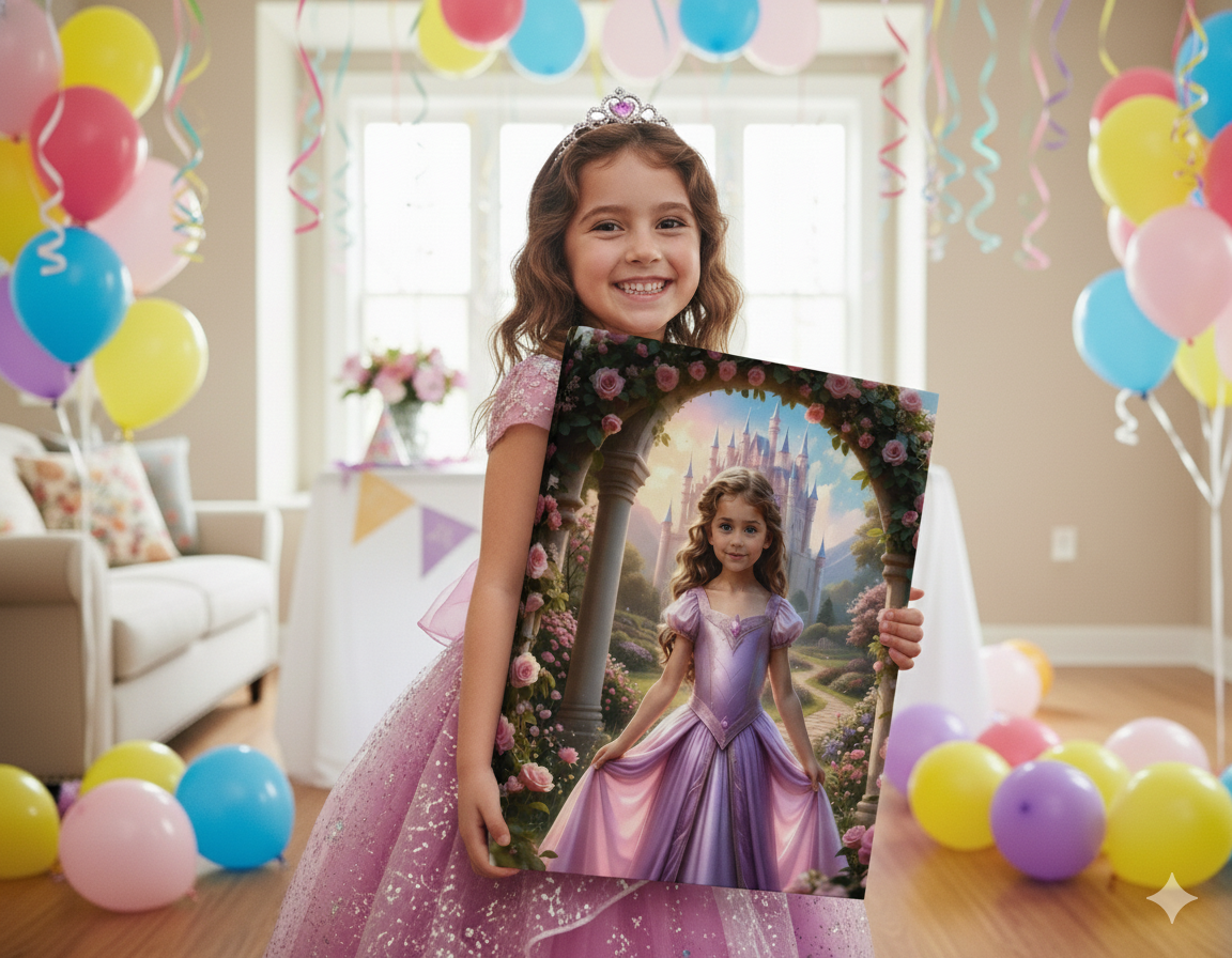 Turn a simple photo into a timeless masterpiece. Whether your child dreams of being a brave knight, a magical princess, or an intrepid explorer — we’ll bring their imagination to life on canvas.